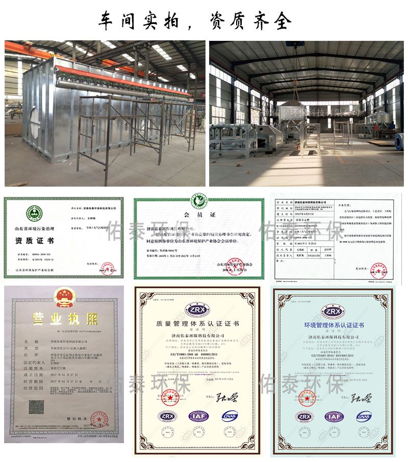 根據風量統計內容,結合上述廢氣處理工藝分析比選,同時考慮到分質分類處理的原則。噴漆廢氣經過水簾除霧后和晾干有機廢氣一同進入“旋流板塔噴淋吸收+濕法等離子體裝置+光催化凈化器+填料噴淋塔”工藝處理后經15米排氣筒達標排放。漆廢氣經過水簾和晾干廢氣合并后進入旋流板塔(可防止漆霧堵塞),在旋流板塔內加入油漆去除劑,去除99%以上的漆霧,防止大顆粒液滴、殘余漆渣等顆粒物進入后續處理設備,減少對后續等離子體裝置及光催化凈化器等工藝設備的污染,提高設備使用壽命;然后,依次引入濕法等離子體裝置、光催化凈化器內,氧化分解廢氣中的VOCs污染成分,***終部分污染物質被活性氧分解成二氧化碳、水和其他小分子化合物;***后,再在光催化凈化器后加填料噴淋塔進一步吸收廢氣中的有害物質(含有部分未來得及徹底反應的碎片粒子和活性氧等成份,一般為小分子羧酸類物質),凈化后的氣體經排氣筒達標排放。有機廢氣總收集效率90%,總處理效率約90%(設計進氣濃度為300mg/m3、處理后尾氣排放濃度約為30mg/m3,滿足達標排放的要求);其中,旋流板塔的去除率25%+濕法等離子體裝置去除率60%+光催化凈化器去除率37.5%+水噴淋吸收塔去除率47.5% 。該套工業化裝置目前在國內外都得到了相當多的應用,去除效率較穩定,可實現有機廢氣有效凈化、穩定達標排放的目標。