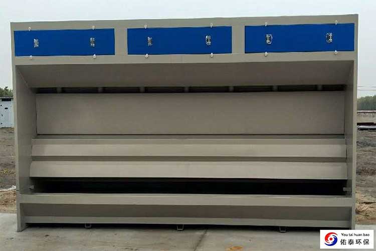 2、V型過濾紙式干式噴漆柜,前面吸附層為褶皺紙。