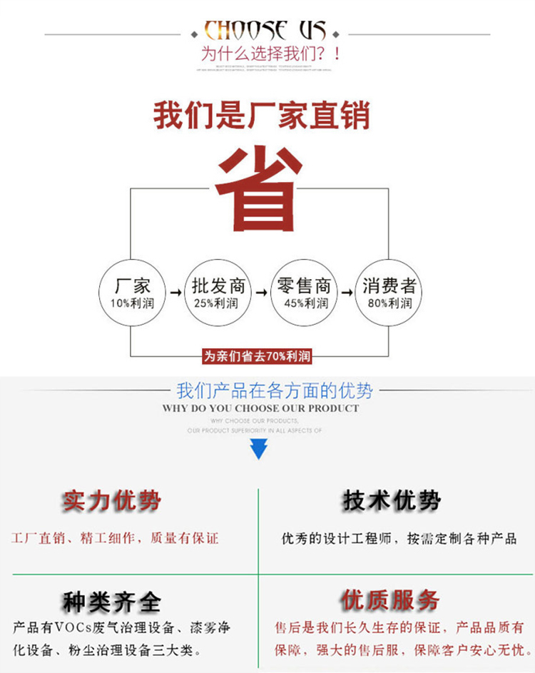 公司的環(huán)保設(shè)備有VOCs廢氣處理設(shè)備、工業(yè)粉塵處理設(shè)備兩大類。廢氣治理環(huán)保設(shè)備有催化燃燒設(shè)備、pp噴淋塔、活性炭吸附箱、移動伸縮噴漆房氣旋塔、水簾噴漆柜漆水分離一體機等環(huán)保設(shè)備。粉塵處理設(shè)備包括濾筒式脈沖除塵器、布袋除塵器、打磨吸塵工作、水簾式打磨臺等設(shè)備。我們可以根據(jù)企業(yè)的實際情況定制合適的環(huán)保設(shè)備。歡迎您來電咨詢15665879292,或者添加網(wǎng)頁下面微信,把您的廢氣治理需求告訴我們,我們?yōu)槟峁┰O(shè)備的詳細(xì)參數(shù)、配置及價格,為你提供相關(guān)設(shè)備的案例圖片或視頻,同時可以給您發(fā)公司車間正在加工設(shè)備的視頻或圖片。