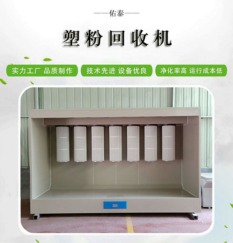 塑粉回收機由箱體、粉末過濾系統(tǒng)、抽風(fēng)系統(tǒng)、控制系統(tǒng)等四大部分組成,噴涂時產(chǎn)生粉塵經(jīng)過高精度濾筒過濾,凈化氣流由抽風(fēng)機排出室外,整個程序電氣自動控制。