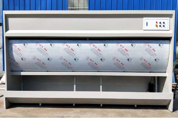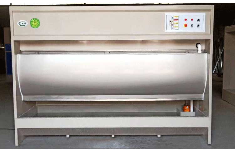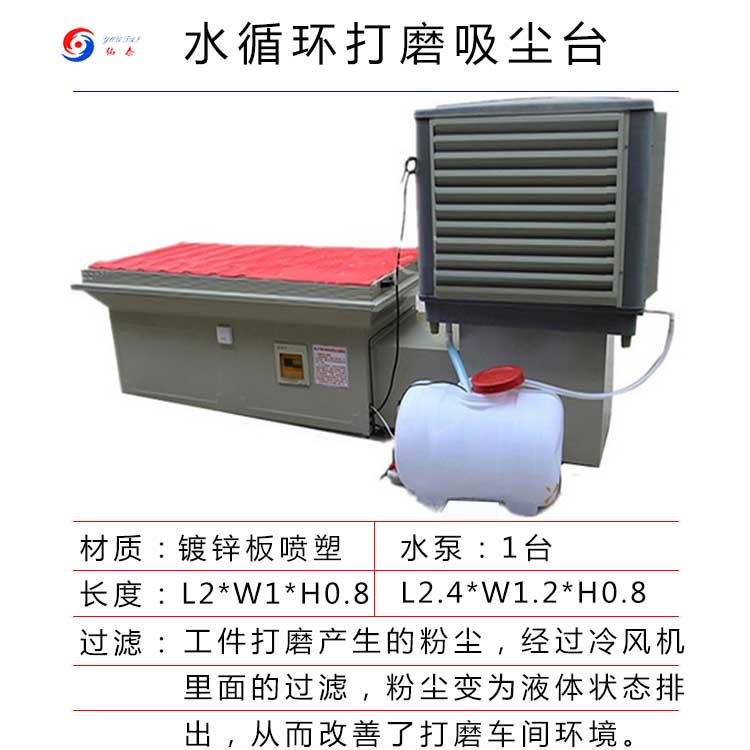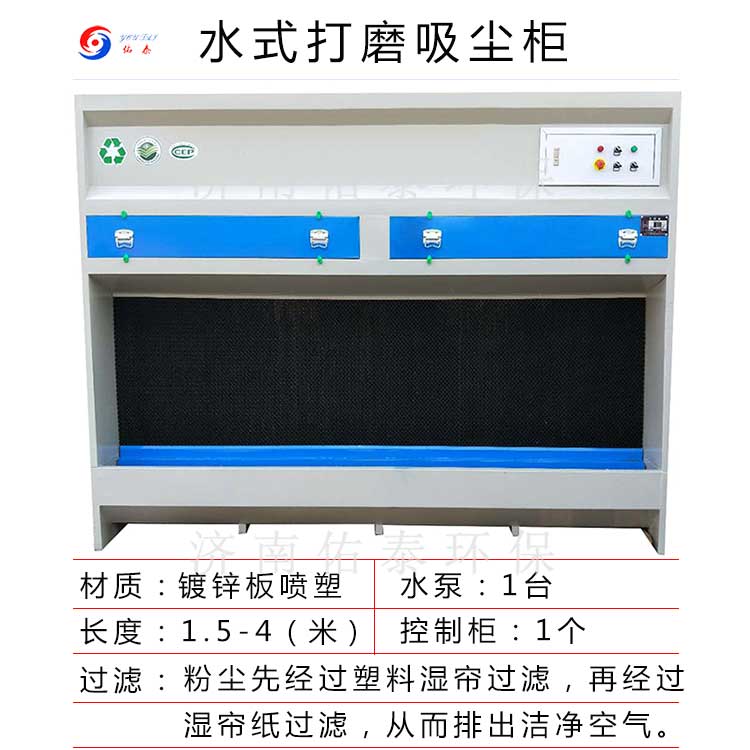 把工件放在水式打磨柜的工作臺面上,產生的粉塵、大量的高濃度含苯有害物質,被吸入設備內,經過多層水洗過濾裝置,使粉塵變為液體狀態排出,工作區不再有粉塵的飄揚,從而改善了打磨車間的工作環境,保證打磨員的身體健康。也能提高生產效率和降低生產成本,具有投資小、運行成本低、安裝方便靈活的特點。