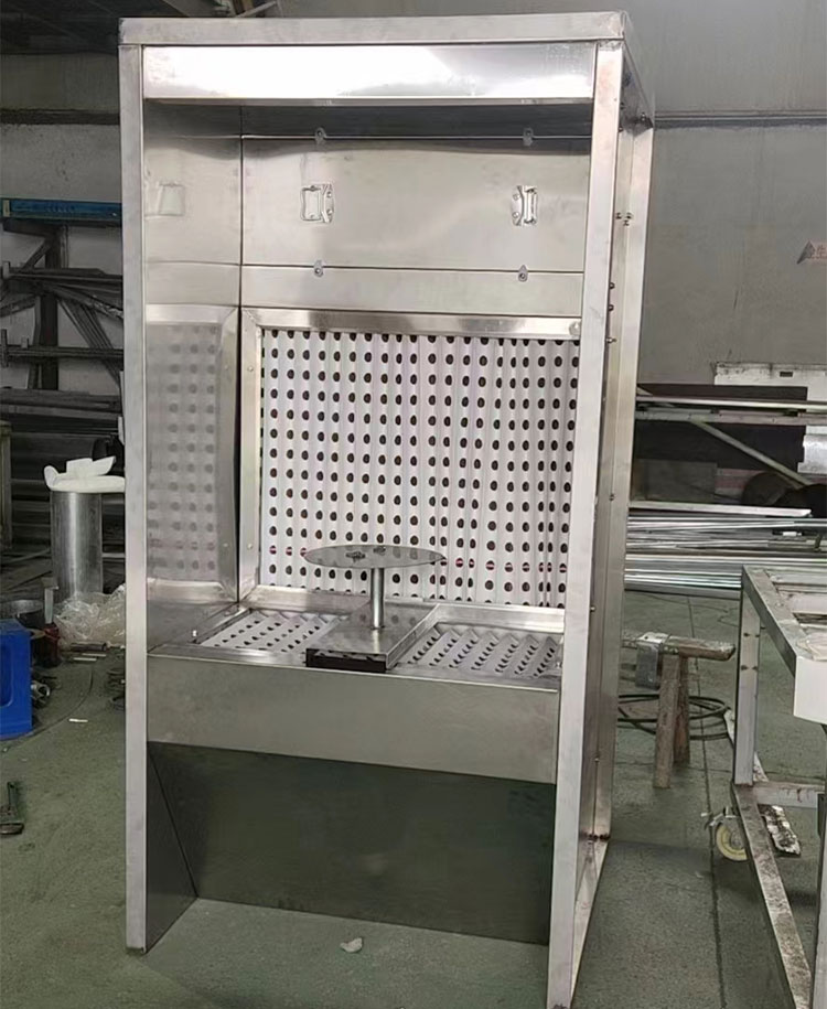 具體尺寸 | 箱體尺寸長2.0米,寬1.0米,高2.2米,臺面高度0.75米,臺面深度0.5米。臺面上附V型過濾紙。臺面帶小轉(zhuǎn)盤。吸附層使用V型過濾紙。抽屜層過濾使用漆霧過濾棉。 防爆燈一盞。 | ||