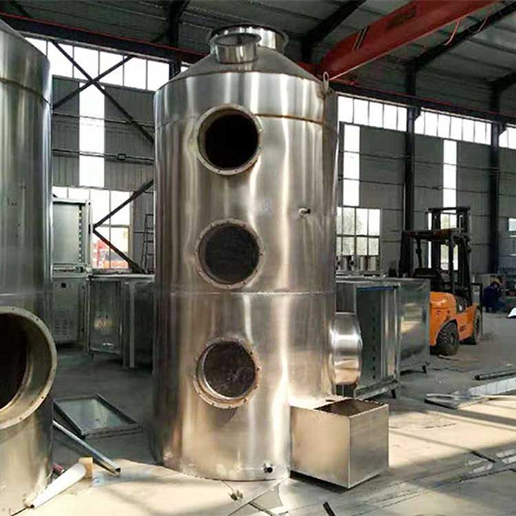 3、可根據要求定制1000至100000風量的噴淋塔;防腐蝕水泵、除霧層、清污口可根據要求添加。