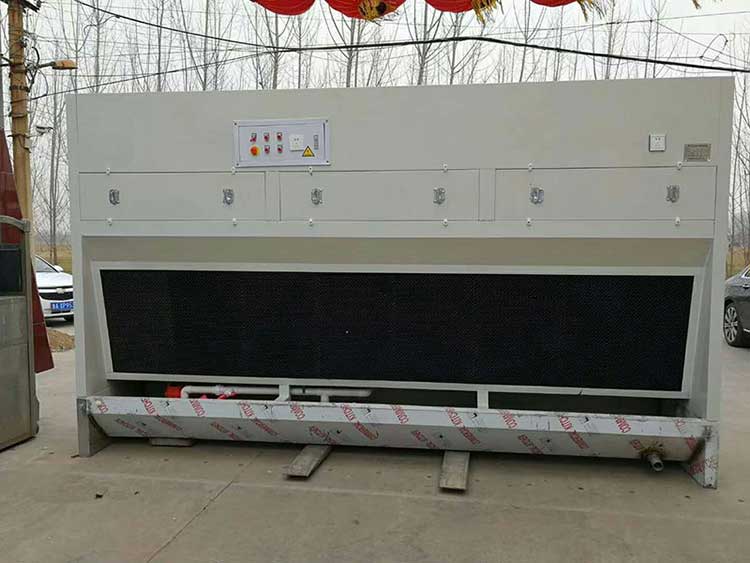 石材打磨除塵柜前面有一層15cm厚塑料濕簾,這種水簾片水簾片采用塑料材質(zhì),網(wǎng)孔為六角形蜂巢狀網(wǎng)孔,前后網(wǎng)孔之間為孔道,孔道側(cè)壁具有透水孔,此結(jié)構(gòu)的水簾片便于通風(fēng)及水的滲透,采用塑料材質(zhì)的水簾片抗霉變、經(jīng)久耐用而且可清洗,降低了使用成本,改善了長期使用效果。